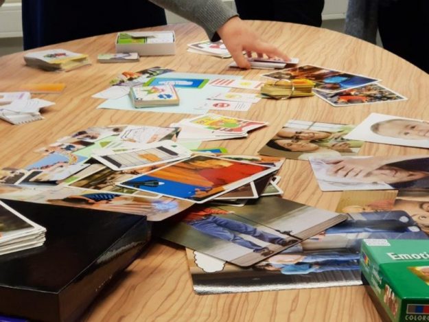 De groep heeft gekeken naar de foto’s voor in het spel. Wat spreekt aan, wat niet. Bij bestaande bordspellen is er een diversiteit aan foto’s van mensen, dieren, natuur, abstract…