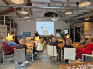 Boven onze verwachting waren er 18 directe en indirecte buren.Tijdens een interactieve workshop hebben we iedereen laten kennis maken met de werkwijze van De Bagagedrager, het ontstaan én met enkele spelvormen die we inzetten.